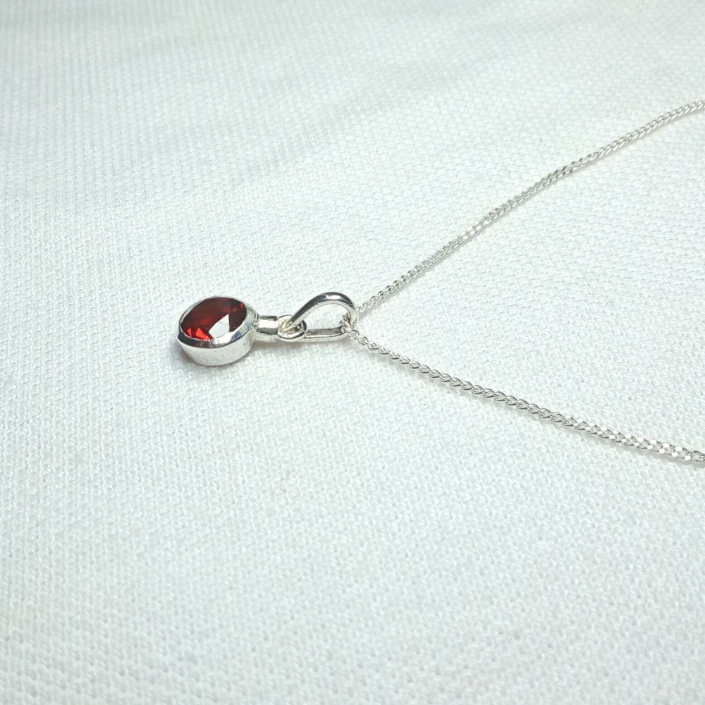 - Symbolizing eternal love and strength, this elegant pendant features a brilliant natural garnet set in high-quality sterling silver. A timeless design perfect for everyday wear or special occasions. Personalize it with an engraving, choose a different gemstone, or upgrade it to luxurious 18K gold.